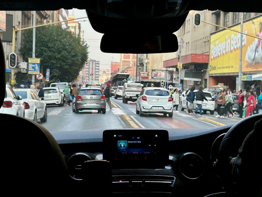 After walking through Nelson Mandela’s house and a museum dedicated to the June 16th student massacre, we feel like we’ve had a pretty good overview of local history and politics, and are ready to go back to the hotel and sleep. On the way back, our driver takes us through the “old” downtown area of Jo-burg explicitly to show us how horrible it is. It looks like a normal city skyline from afar, but he explains that after the fall of the apartheid government, most of the companies that used to have offices here moved out, fearing that the new Black government wouldn’t be good for business. As a result, in many of the high-rise buildings are abandoned, either with security with hopes they can be repopulated in the future or left to fall into disrepair and be taken over by gangs. There are a plethora of people wandering around, apparently mostly illegal immigrants. Trash in the streets because the government won’t clean it up because the illegal immigrants don’t pay taxes. The government still operates from the downtown area, so you can see some buildings that are completely fenced off, apparently workers come into the downtown, work and eat in this enclosed areas, then drive back out of the city ignoring the fact that the city has fallen into disrepair around them.