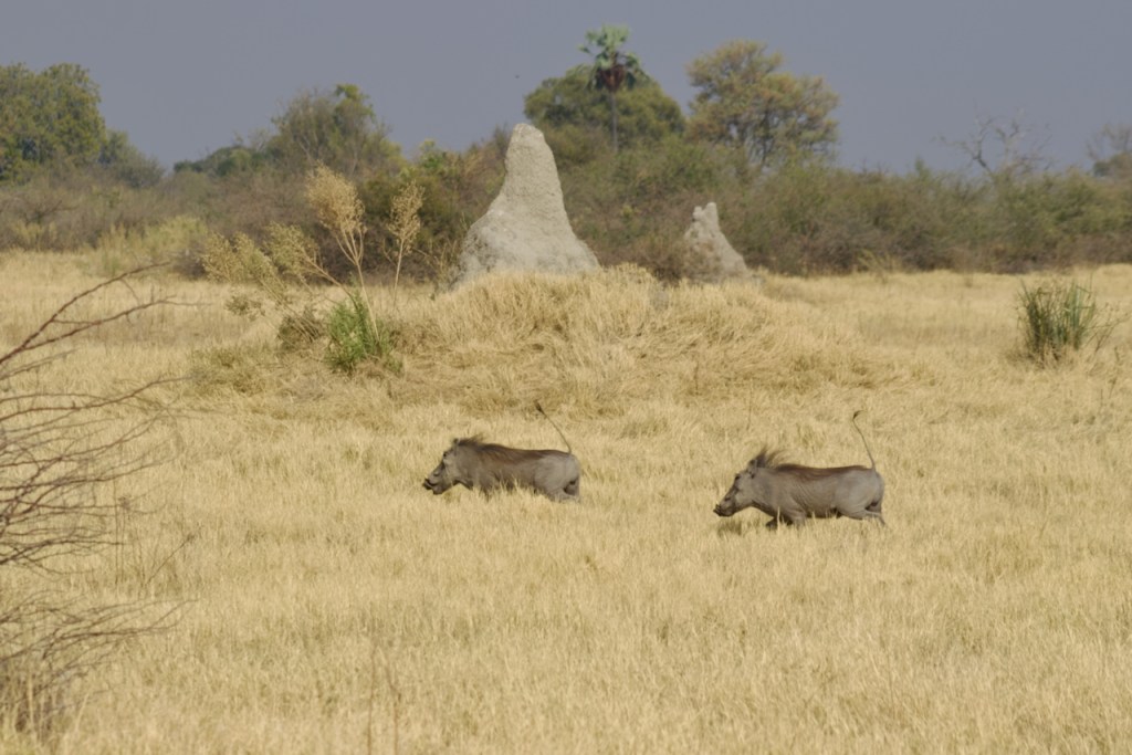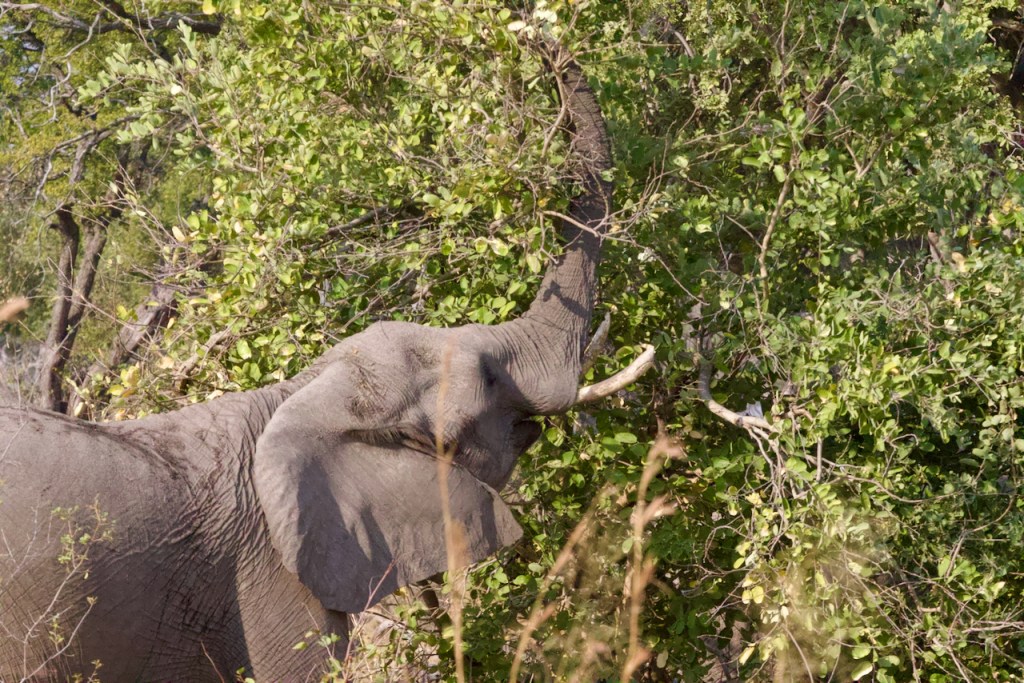 This morning is even warmer than the previous and so we only put on our light canvas safari jackets for the morning drive. Just outside camp there is a line of trucks in the grass all jockeying for a sight of a leopard laying in the tall grass. Guides will never pass up an opportunity for a leopard sighting, but we try and hurry Lasty along since we’ve already seen leopards a bunch and the best view you can hope for in this situation is a twitching ear.