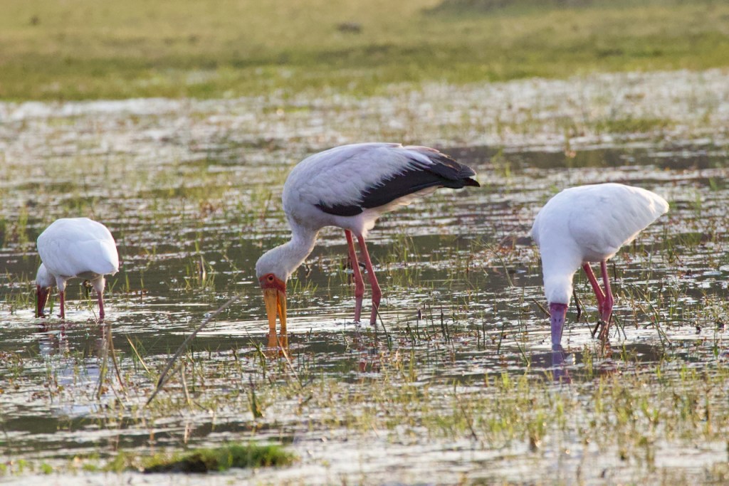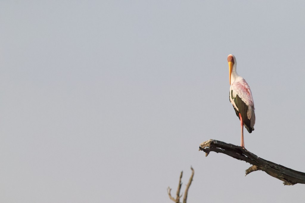Even after our long morning drive, we unanimously decide to go for another drive in the afternoon. This time Lasty is going to stay much closer to camp and take it slow. It is a great drive with tons of elephants, including babies of all sizes, and lots of birds. Bird highlights include 3 huge owls, African hoopoe, yellow billed stork, fish eagle, goliath heron, saddle billed stork, and spoonbill. We have our sundowners in the Paradise Pools area surrounded by birds and elephants roaming on the horizon.