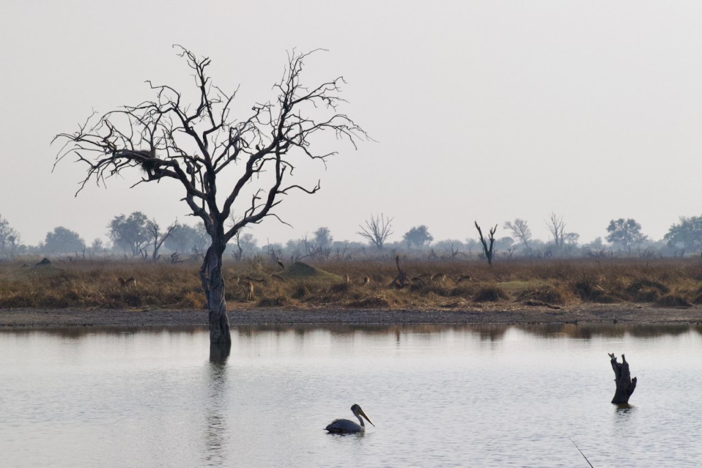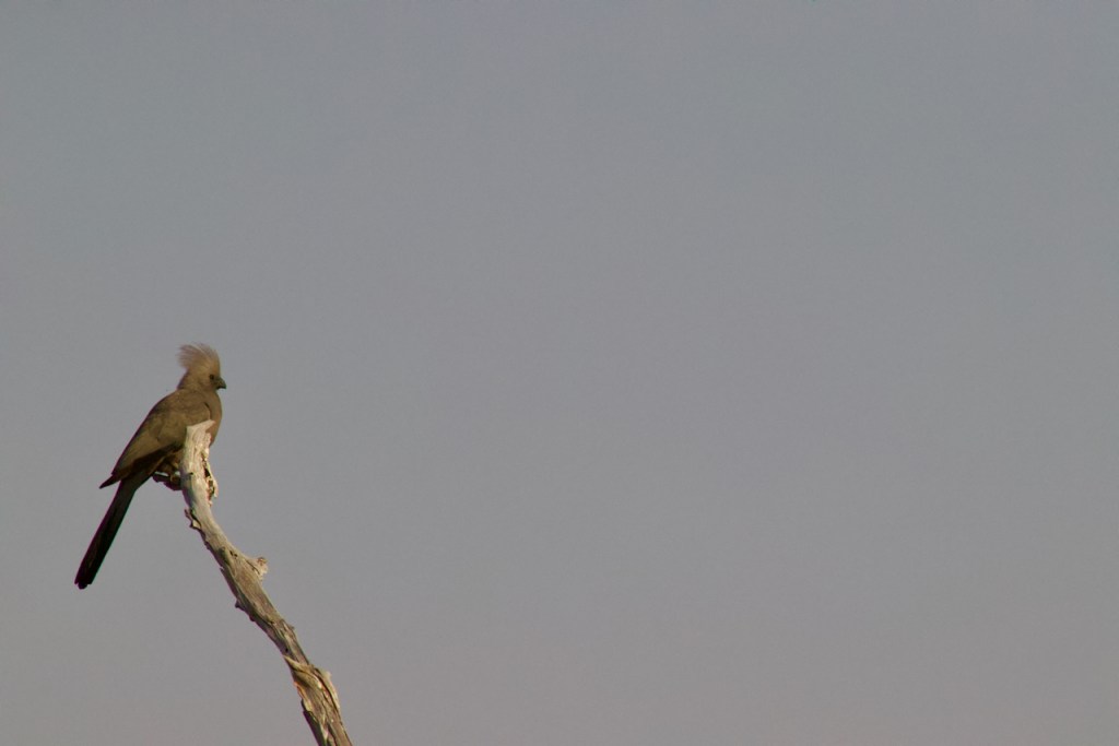 Moving so fast, there is limited wildlife that we take in, and the habitat that cheetahs prefer tends to be more wide open and somewhat less dense with wildlife. However, the drive is beautiful and nice to get away from the more busy sections and feel like we are all on our own in the middle of the African bush. Still we see elephants, jackals, lots of warthogs, hyena, numerous bird nests, giraffe, antelope, and lots of birds. For coffee we stop near a beautiful watering hole with a large dead tree in the middle with a crane and fish eagles in a tree near by. Quite beautiful and different vista from others.